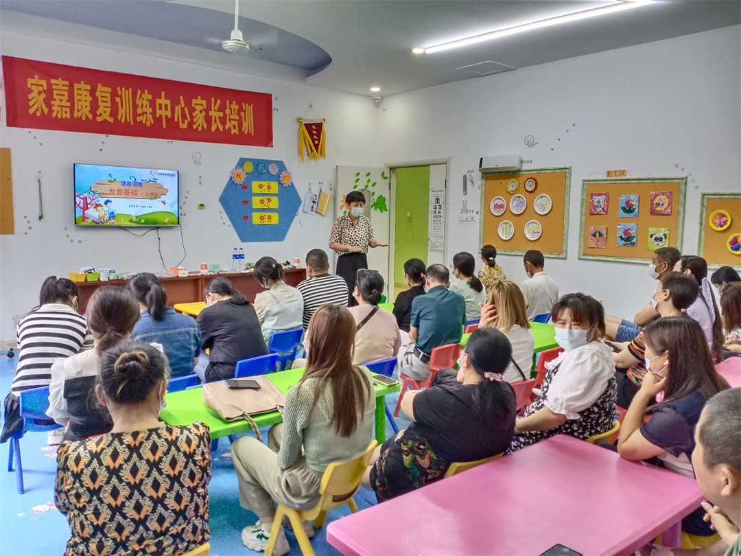 “语言”是孩子康复中的关键领域,发音练习、呼吸训练、唇舌训练是“语言”的基础训练项目。为了增强家长的康复技能,更好的帮助孩子提升语言能力,有效完成家庭康复训练,我中心于5月19日在培智部多媒体教室开展了主题为《语言康复-发音基础训练实操篇》的家长培训。