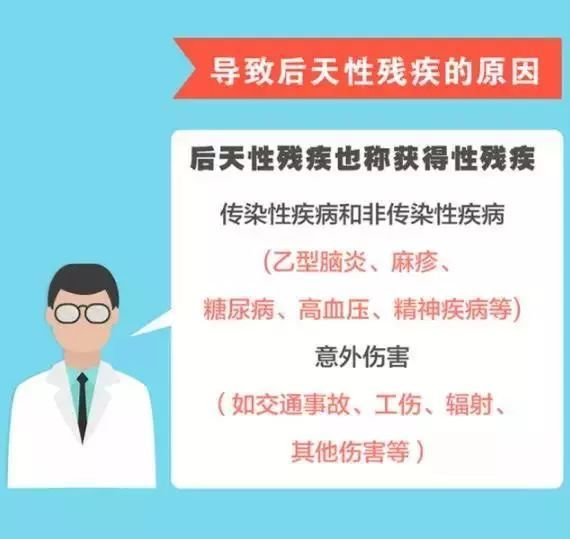 导致后天性残疾(后天性残疾也称获得性残疾)的因素: