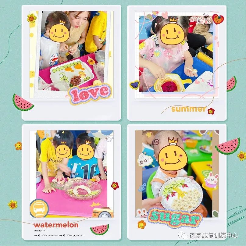 清爽夏日,水果来袭!水果是孩子们天天都能见到的食物,同时水果的形状和丰富的色彩既能激发幼儿美的灵感,又能让他们充分的发挥想象。为培养孩子们的审美能力、艺术素养、动手能力和创新能力,家嘉听力言语部于8月25日特开展了以“夏日果缤纷”为主题的亲子活动!
