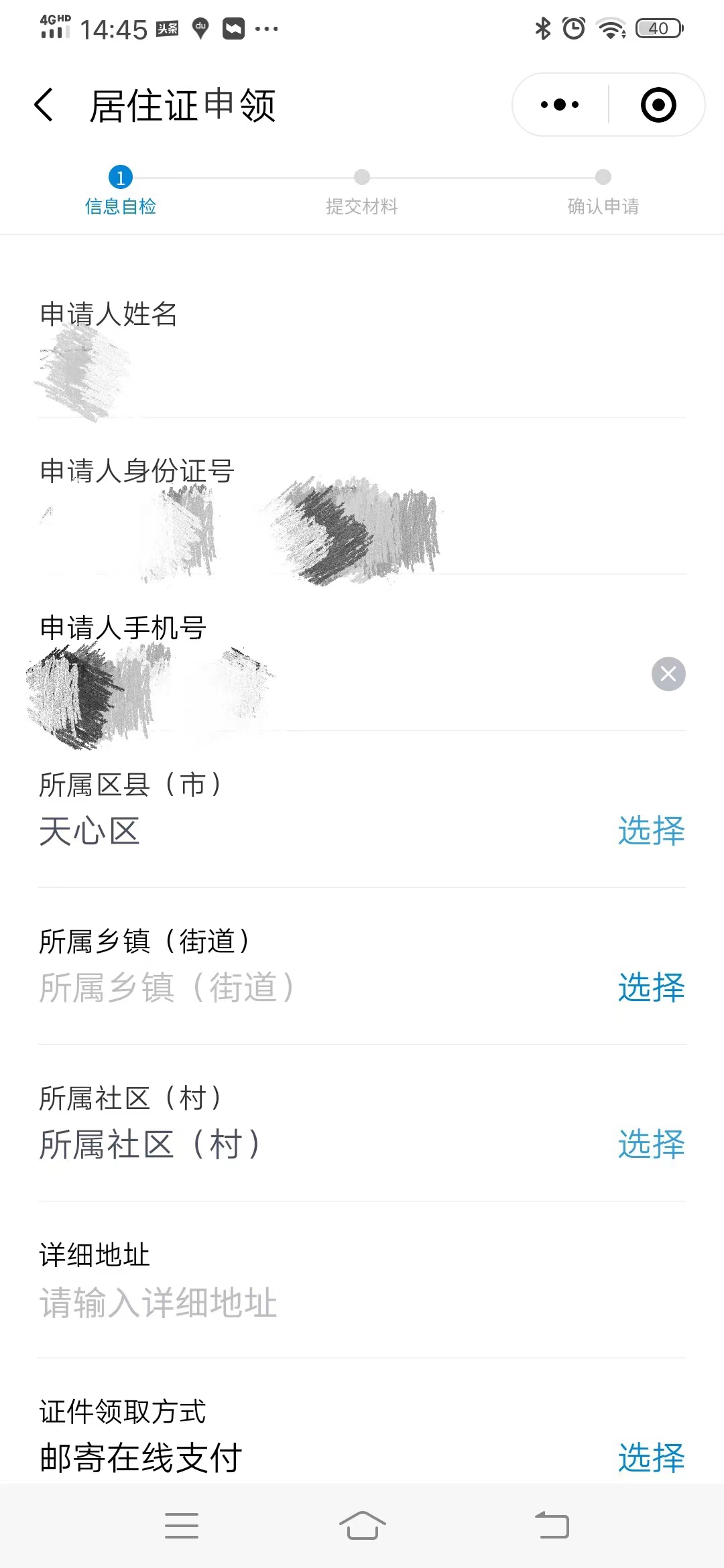第三步:填写详细居住信息,点击进入下一步。