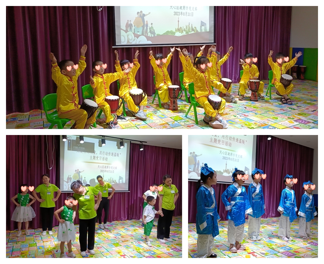 天心区政府办党支部捐赠仪式在我中心多媒体教室进行。中心的孩子向前来的领导和党员干部表演节目感谢政府和社会的帮助。节目中领导带着小朋友跟着音乐节奏一次次摇动手中铃、鼓、感受音乐带来的美妙,活动关怀备至、其乐融融。